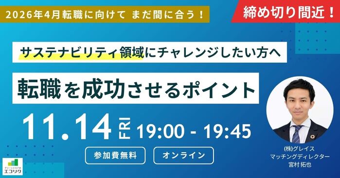 【11/14(金)開催】サステナビリティ領域にチャレンジしたい方へ 転職を成功させるポイント