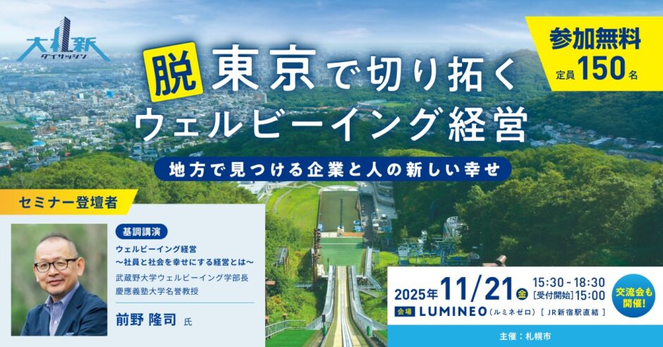 充実した都市機能と豊かな自然が調和するまち・札幌市が、ウェルビーイング経営と企業成長の両立を実現するヒントをご提案します。