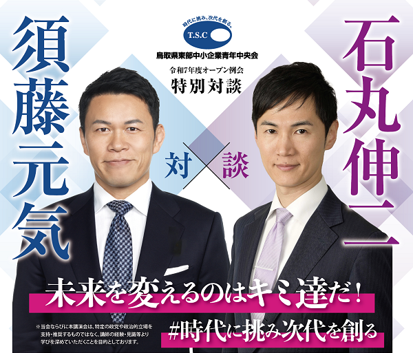 - 講師プロフィール・石丸伸二 氏 https://ishimaru-shinji.com/ ・須藤元気 氏 https://genki-sudo.com/