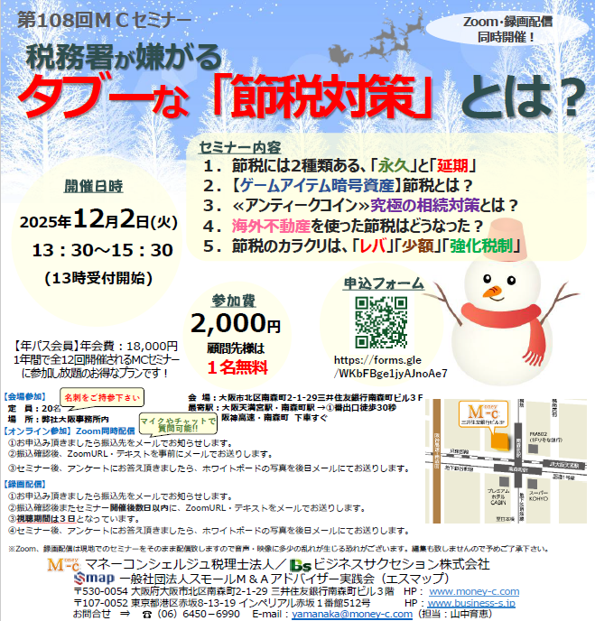 「タブー」と聞くとドキッとしますが、本セミナーでは法律や税法に基づいた正当な節税手法のみを、