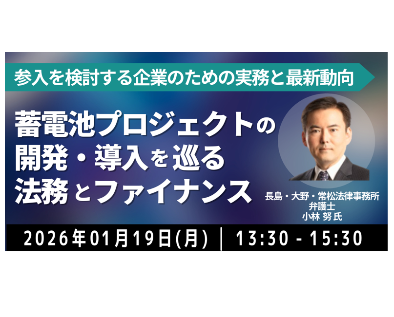 蓄電池プロジェクトの開発・導入を巡る法務とファイナンス-1月19日開催
