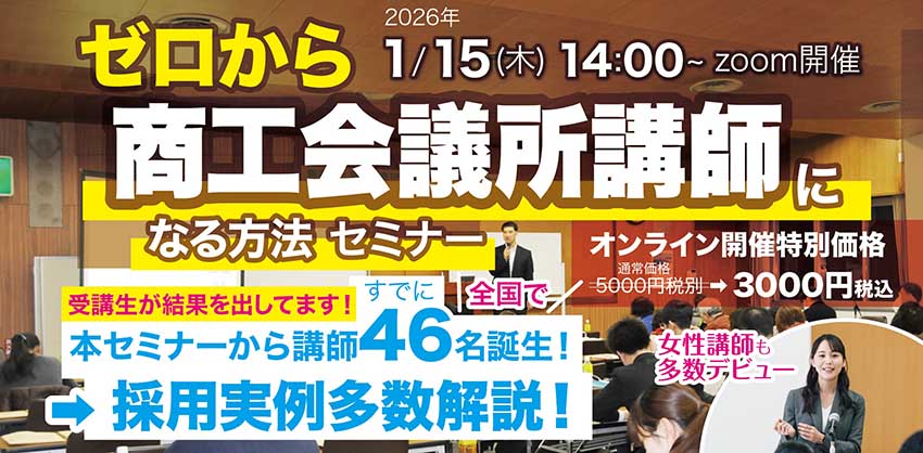 ゼロから商工会議所講師になる方法セミナー