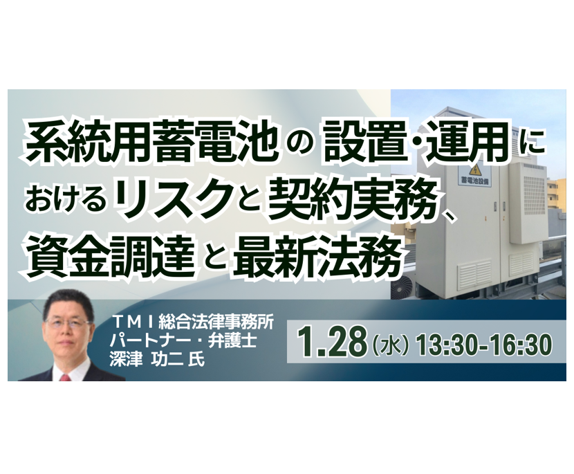 本セミナーでは、系統用蓄電池の運用による取引の枠組み、設置・運用に
