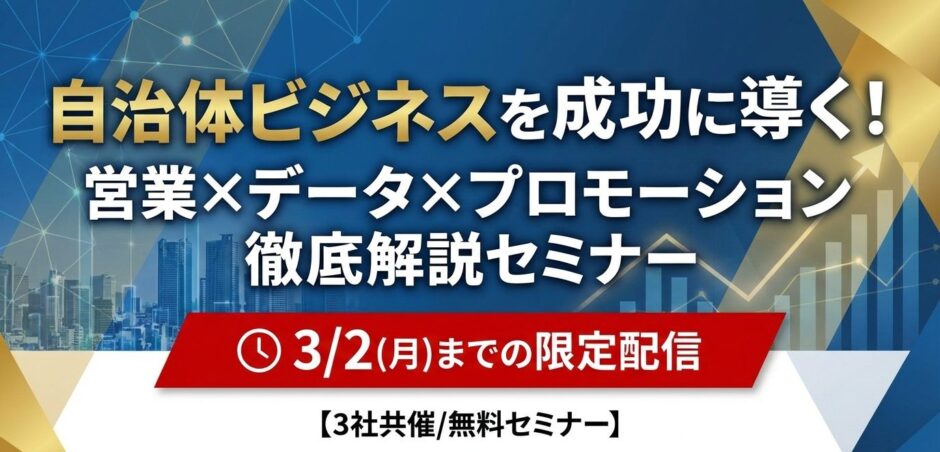 本セミナーでは、自治体ビジネスを成功に導くための「基本」と「実践ノウハウ」を営業・データ活用・プロモーションの3つの視点から徹底解説いたします。