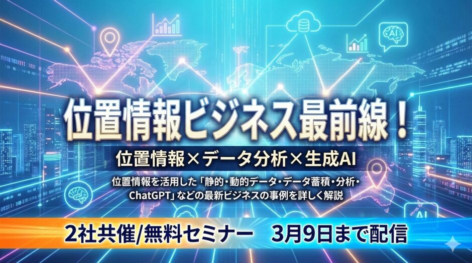 「位置情報×データ分析×生成AI」位置情報ビジネス最前線! 静的・動的データ/データ蓄積・分析/ChatGPT【2社共催/無料セミナー】