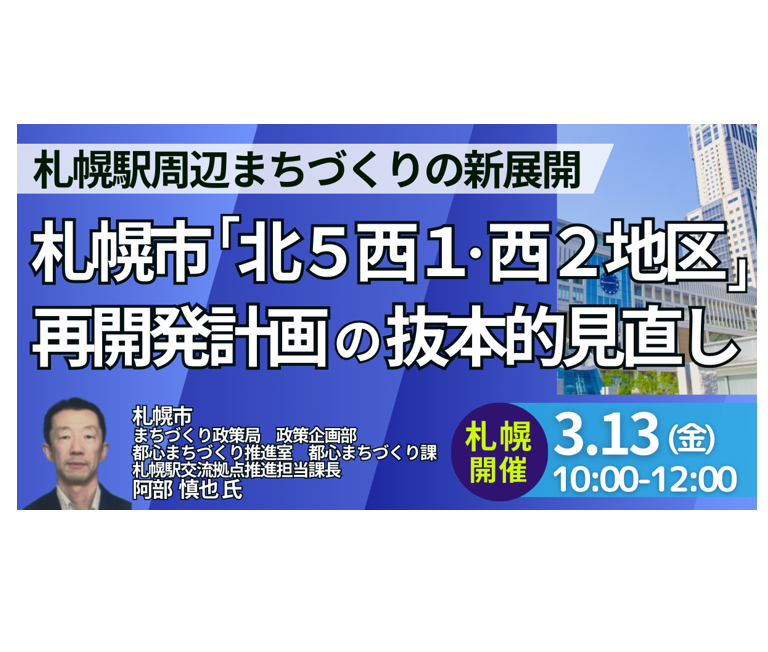 - 講師名札幌市 まちづくり政策局 政策企画部 都心まちづくり推進室 都心まちづくり課 札幌駅交流拠点推進担当課長 阿部 慎也 氏