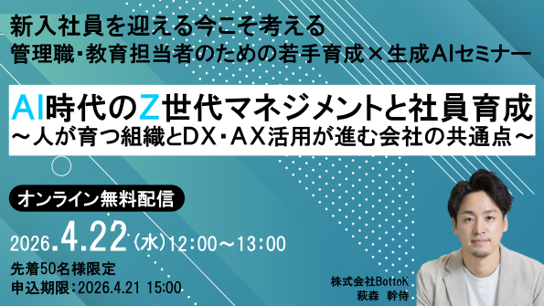 【4月22日(水) 12時開催!】AI時代のZ世代マネジメントと社員育成