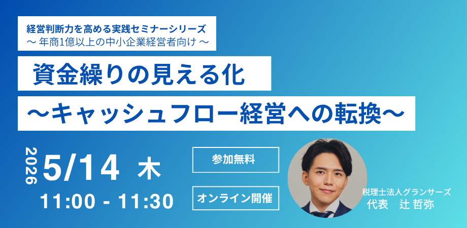 本セミナーでは、多くの経営者が陥る“利益とキャッシュのズレ”の正体を徹底解説。キャッシュフロー計算書の読み方から、資金繰り表の作り方、経営体質を変える3ステップまでを実践的にお伝えします。