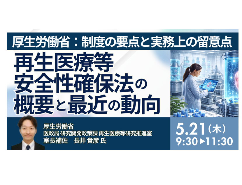 - 講師名厚生労働省 医政局 研究開発政策課 再生医療等研究推進室 室長補佐 長井 貴彦 氏
